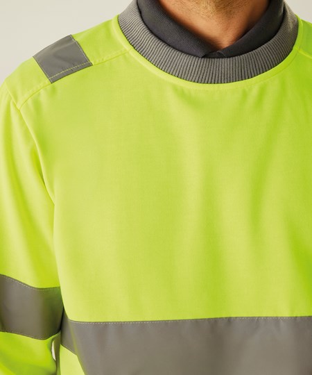 The Hi-vis Pro Contract Crew Neck Sweatshirt from Regatta Professional biedt comfort, zichtbaarheid en duurzaamheid tijdens het werk. Gemaakt van geborstelde polyester fleece en voorzien van een klassieke ronde hals en ribboorden. Gecertificeerd voor veiligheid.