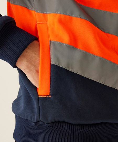 Restez visible dans ce sweat à capuche haute visibilité. Ce sweat à capuche est fabriqué dans un mélange en polycoton pour plus de confort et de durabilité. Mettez la capuche pour mieux vous protéger. Le sens des flèches en chevron à haute visibilité indique dans quelle direction vous avancez en cas de faible luminosité. Conforme à EN ISO 20471:2013 +A1:2016 Classe 2 (orange également conforme au RIS-3279/TOM)