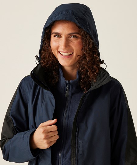 Wanneer je niet kan kiezen tussen een fleece en een waterdichte jas, kies dan voor beide met de Defender 3-in-1. De winterjas biedt waterdichte en winddichte bescherming, met een gaas gevoerd lichaam. Wanneer de regen in de wolken verdwijnt, trek dan de waterdichte buitenlaag uit en onthul een warme fleece. Met pluisvrije kwaliteiten, is de fleece bestand tegen langdurig gebruik. De damesjas heeft een mooie pasvorm voor een flatterende stijl en een afwerking met peached polyester voor een superzacht en comfortabel gevoel op de huid.