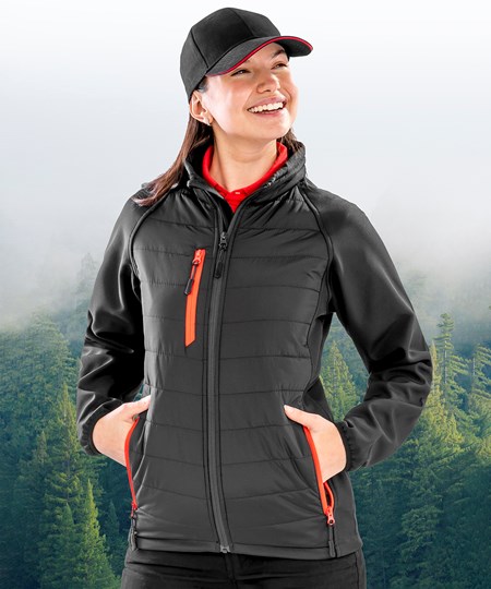 Gekleurde versiering, softshell met trendy wattering voor extra warmte zonder extra gewicht.