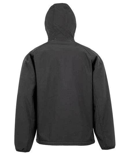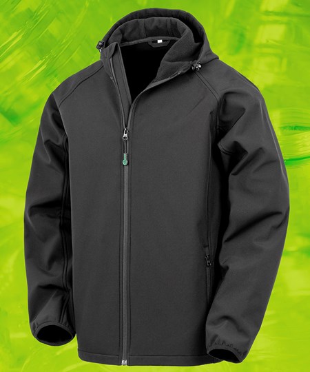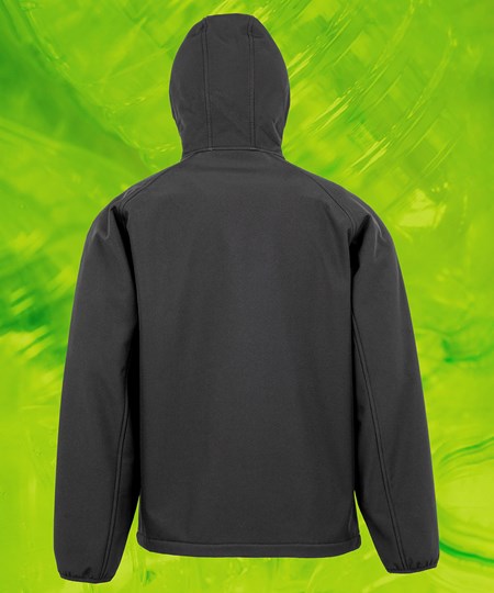 Een geweldig zittende, nette en duurzame herensoftshell met capuchon, gemaakt van gerecyclede stof.