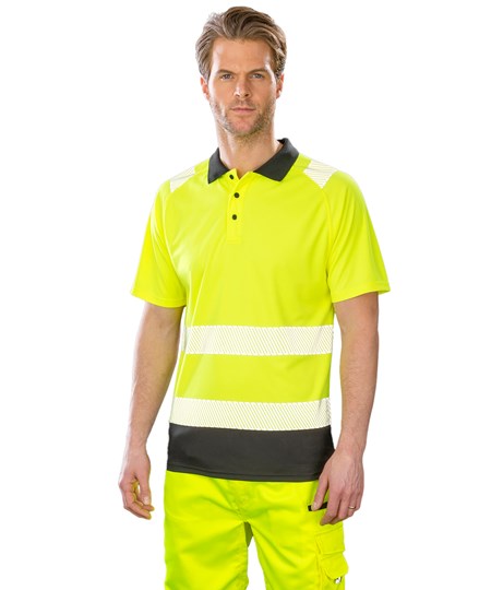Een koel en ademend, in het oog springend en comfortabel veiligheidspoloshirt in een gerecyclede stof met een zachte textuur en hightech stretch.