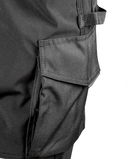 - 3-laagse gelijmde stof van 260 gsm, bestaande uit: Buitenlaag: 100% polyester. Tussenlaag: waterdicht 8000 mm, ademend 3000 g en winddicht TPU-membraan. Binnenlaag: 100% polyester. Kniestukken: Oxford polyester met PU-coating
