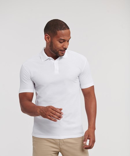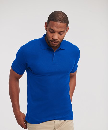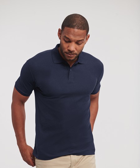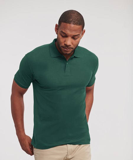Het Authentieke eco-poloshirt is gemaakt van gerecycled polyester en katoen en wordt geproduceerd in de eigen productiefaciliteit van Russell Europe. Dankzij duurzamere materialen, extreem korte Europese transportroutes en volledige controle over de productie hebben we een poloshirt ontwikkeld met minder impact.