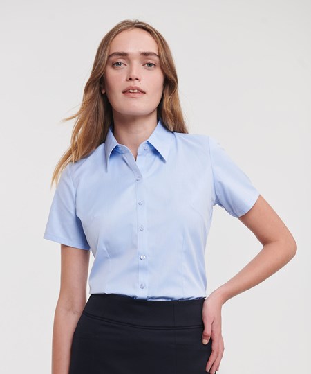 Women's short sleeve herringbone shirt