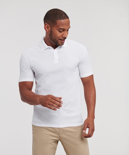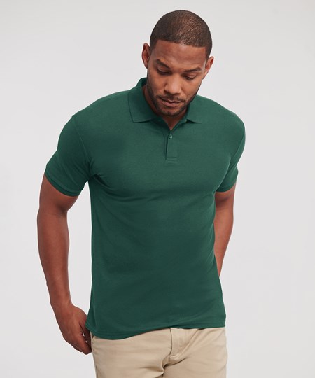Het Authentieke eco-poloshirt is gemaakt van gerecycled polyester en katoen en wordt geproduceerd in de eigen productiefaciliteit van Russell Europe. Dankzij duurzamere materialen, extreem korte Europese transportroutes en volledige controle over de productie hebben we een poloshirt ontwikkeld met minder impact.