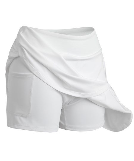 Klassieke, uitlopende rok met hoge taille en geïntegreerde short voor tennis en alle andere baansporten. Deze hi-stretch gerecyclede stof met 2 zakken heeft een flatterende drapering en wijdte.