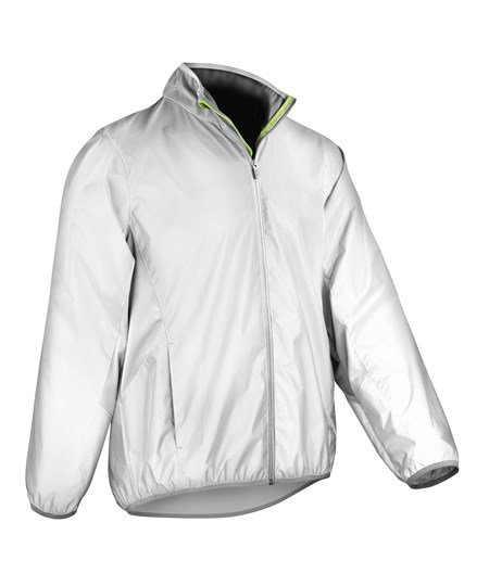 Goed zichtbaar sportjacket in luxe-uitvoering met 'ghost'-effect, 360 graden fluorescerend als optionele veiligheidssensibilisering langs de weg. Wind- en waterdicht.