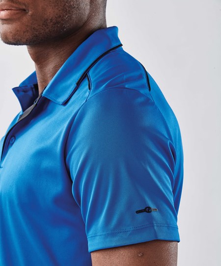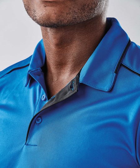 Deze H2X-DRY® polo met technische vochtregulatie beschikt over een duurzame kraag in dezelfde stof, die na het wassen in zijn vorm blijft, en ook over dynamische, contrastrijke boorden aan de kraag en schouders.