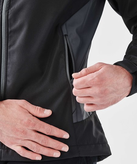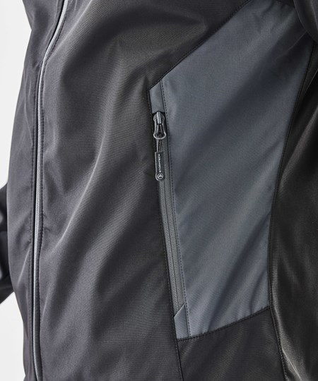 Tweekleurige gelijmde sportsoftshell met zachte lichtgewicht voering, ontworpen voor maximaal comfort en mobiliteit, en met een stormflap binnenin, een kinbeschermer en een spatwaterdichte Stormtech D/W/R-afwerking voor een duurzame weerbestendige bescherming.