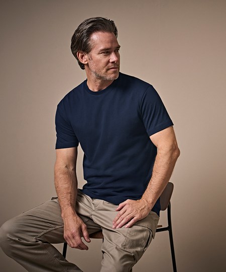 Dit aansluitende, iconische Fashion Sof T-shirt van een zwaardere kwaliteit stof heeft nu een stijlvolle touch. Met aansluitende mouwen en schouders, een grotere halsopening en een dubbellaagse halsribboord met elastaan.