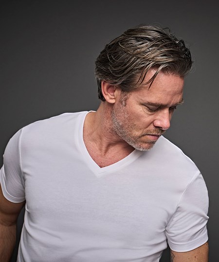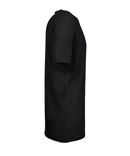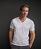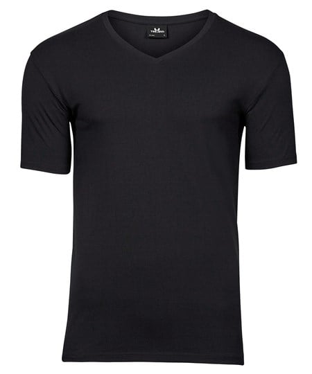 Dit aansluitende T-shirt met v-hals en stretch heeft een tweelaagse, smalle halsribboord en verstevigde schouders.