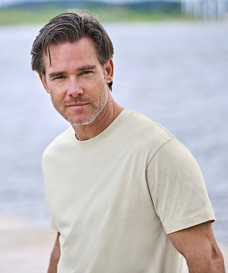 Een iconisch T-shirt van een zwaardere kwaliteit stof, de Sof tee, wordt al bijna 50 jaar geproduceerd. Het is gemaakt van langvezelig, ringgesponnen, gekamd katoen van 185 gsm en heeft een dubbellaagse halsribboord met elastaan. Dit T-shirt is uitstekend geschikt voor zowel bedrukking als borduring.