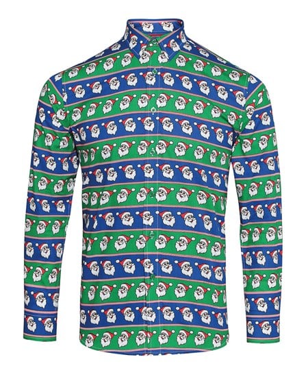 - Dit formele longsleeve-shirt met honderden vrolijke Kerstmangezichtjes en andere figuurtjes is geweldig om rond de kerstdagen op kantoor te dragen!