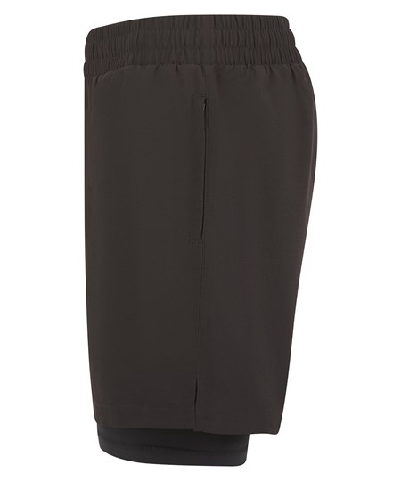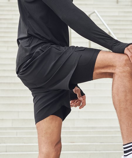 Dubbellaagse sportshort voor heren - ontworpen om uw sportpresentaties te verbeteren. Gemaakt met een buitenstof van viervoudige stretch en met ongeëvenaarde flexibiliteit en bewegingsvrijheid, zodat u optimaal kunt presteren. Uitgerust met ritszakken en een extra verborgen zak op de onderlaag, biedt deze short veilige opbergruimte voor uw benodigdheden, zodat u uw waardevolle spullen veilig kunt bewaren, terwijl u zich op de workout concentreert. Met een trekkoord binnenin kunt u de pasvorm van deze short eenvoudig aanpassen aan uw voorkeur, zodat hij tijdens elke activiteit comfortabel en stevig zit. Het dubbellaagse ontwerp voegt extra ondersteuning en bedekking toe, waardoor deze short geschikt is voor verschillende sporten en fitness-activiteiten. Dus, of u nu naar de sportschool gaat, van hardlopen houdt of een ander atletisch doel nastreeft, deze zwarte sportshort vormt de perfecte combinatie van stijl en functionaliteit.