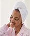 Verzorg uw haar in deze luxueuze katoenen wikkelhanddoek van badstof. Hij is niet alleen compact en praktisch, maar helpt u ook om uw haar snel te drogen vanwege zijn uitstekende absorptievermogen. Ga lekker zitten en ontspan uzelf, terwijl u uw haar in stijl droogt.