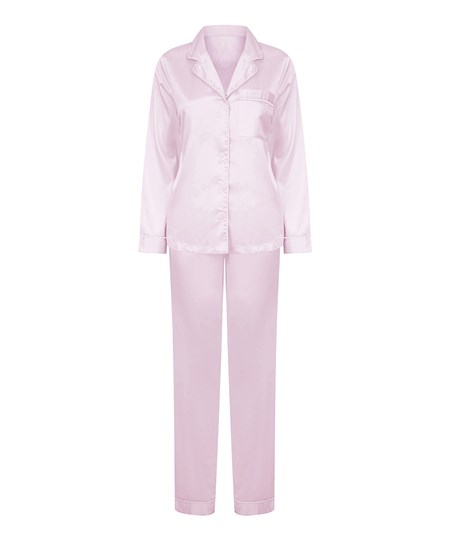 Voeg een vleugje luxe toe aan uw leven met dit Satijnen Pyamasetje. Het stretchsatijnen materiaal en de elastische taille maken dit setje supercomfortabel met knoopsluiting en borstzak aan de voorkant. Stijl contrasterend biesje.