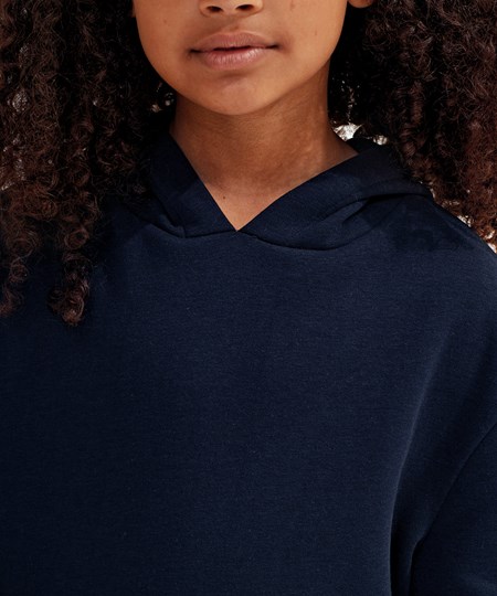 Ren, dans en speel in TriDri's moeiteloos coole en comfortabele korte oversized hoody voor kinderen. Een gemakkelijk aan te trekken laag die perfect gecombineerd kan worden met een joggingbroek met hoge taille of een elastische legging. Maak de look af met een klassiek paar sportschoenen.