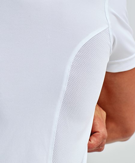 Deze TriDri®-polo combineert een vochtafvoerende stoftechnologie met ingenaaide mesh panelen op de juiste plaats om u droog en koel te houden, zelfs tijdens de meest intensieve workouts.