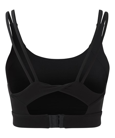 Deze crossback-sportbeha van TriDri® met dubbele bandjes en een handige haak- en oogsluiting voelt behaaglijk en veilig aan, terwijl u beweegt. De soepele, lichte stof voert zweet af om u droog, comfortabel en geconcentreerd te houden. Bij elke training, stap en sprong - weet u dat u ondersteund wordt.