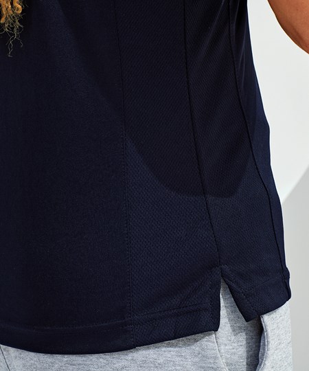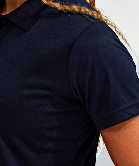 De zachte ademende stof van deze damespolo voelt comfortabel aan. De traditionele knoopsluiting en kraag van de polo geven u een chique uitstraling, terwijl het vrouwelijke silhouet door het flatteuze paneel als hart van dit ontwerp gewaarborgd blijft.
