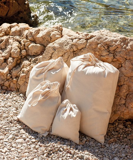 Deze multifunctionele katoenen plunjezak is verkrijgbaar in vier verschillende maten en twee veelzijdige kleuren. Elke plunjezak heeft een klassieke trekkoordsluiting waarmee de tas eenvoudig en effectief dicht te doen is. Deze plunjezak is gemaakt van een mix van GRS-gecertificeerd uit de productie gerecycled katoen en hergebruikt polyester en brengt ons zo dichter bij een milieubewustere toekomst.