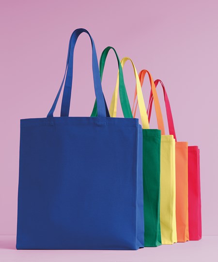 Smart and sturdy, this spacious tote has ample room for larger items like books, tins or bottles. Structured bottom and side gussets make it easy to stand up for hands-free packing, while the long straps sit comfortably on the shoulder, making shopping a breeze. Made from 100% recycled 280gsm cotton that’s designed to last and is ready to customise with colourful creative imprints.