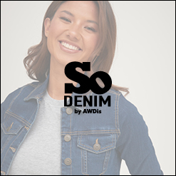 So Denim by AWDis is built on the belief that denim is versatile and timeless. The carefully designed range boasts adaptable, contemporary staples with on-trend and retail-ready details, as well as providing functionality.