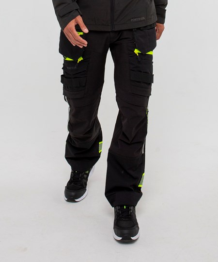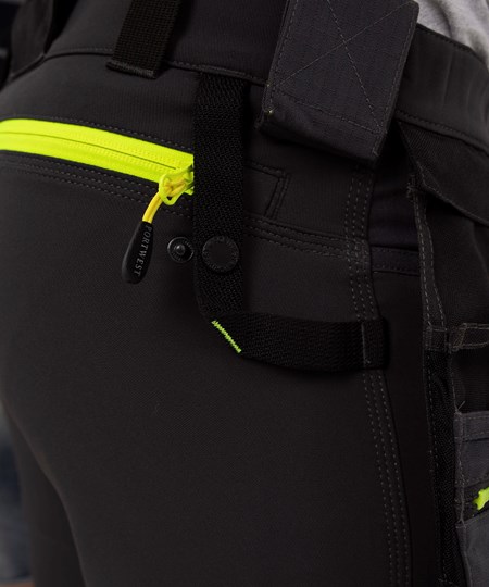 The Holster trouser is ergonomically designed and uses the targeted placement of dynamic 4X stretch fabrics to give maximum range of movement when working. The trouser features a high-rise back waistband with side elastication ensuring protection in all working positions. Pre-bent top loading adjustable knee pad pockets generously sized front pockets and multi-functional zip thigh pockets offers secure storage of phone pens and tools. Triple stitching throughout for maximum durability.