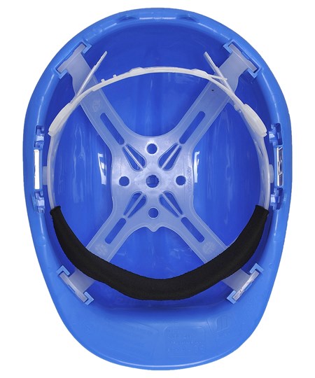 High-density polypropylene shell helmet 4 points plastic suspension harness. Buckle adjustable size 55-62cm. Soft sweat band included.