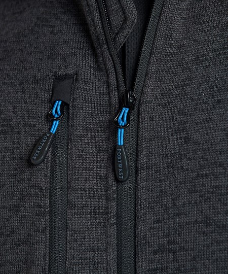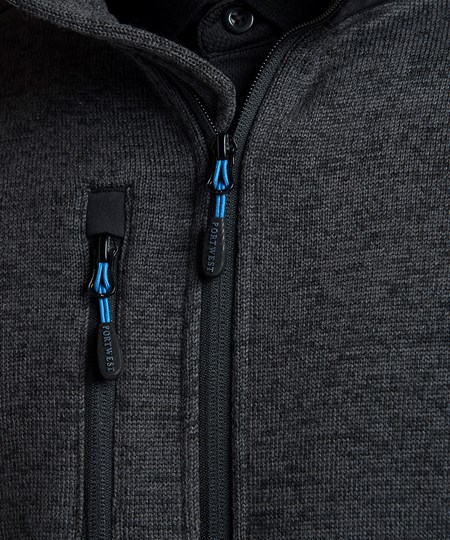 Contemporary work jacket made from a soft knitted fleece fabric ensuring that once you put it on you won't want to take it off. Reinforced shoulders and back panels offer added durability in heavy-use areas. Interchangeable zip pullers in blue red and lime green are supplied for easy integration of corporate colours. Designed with a modern fit this jacket hosts a range of practical features including a longer back length a rubber zip puller and multiple pockets.