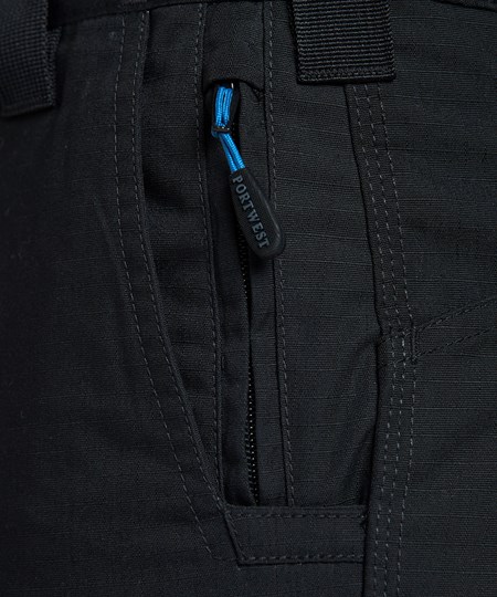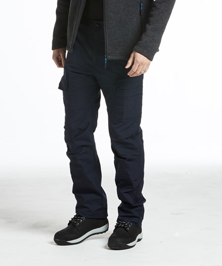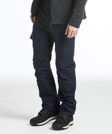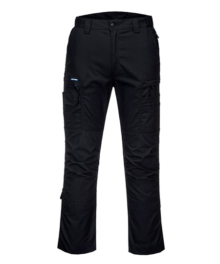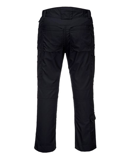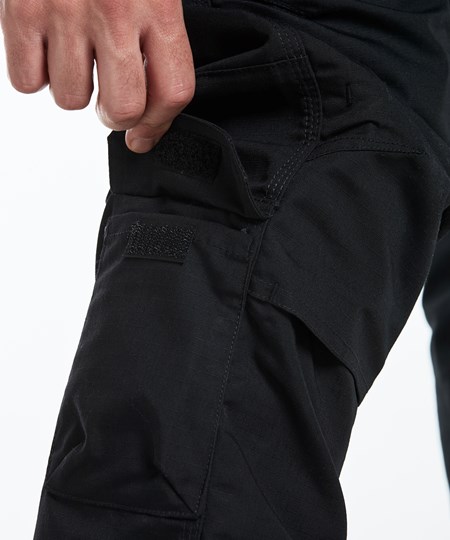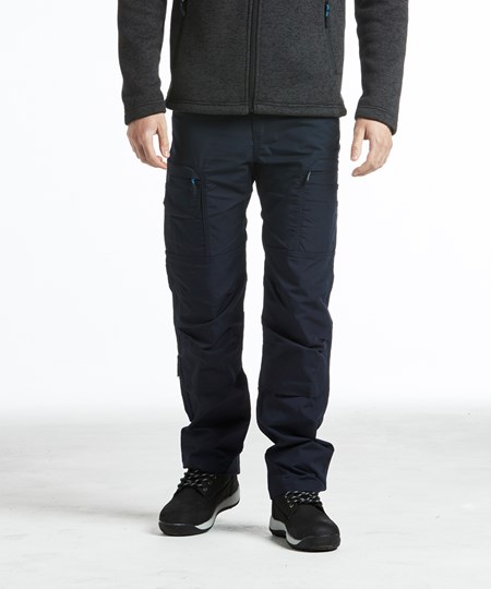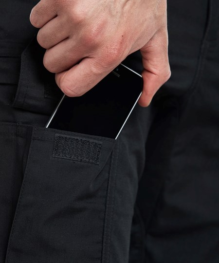 Contemporary work trouser made from highly durable ripstop fabric that stretches as you move. Subtle articulation on the knees allow for increased freedom of movement and a high rise back waistband ensures protection in all working positions. Packed with functionality including pre-bent knees a crotch gusset two tier knee pad pockets and an adjustable leg length for added convenience. Multi-functional thigh pockets provide secure storage of phones pens and tools.