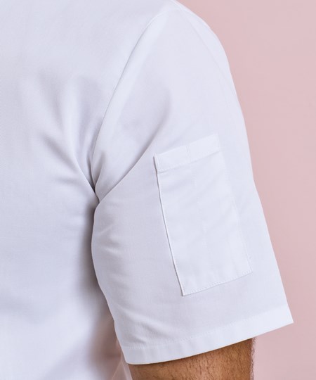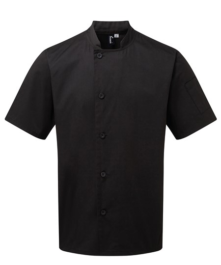 A durable short sleeve chef's jacket that fastens down the right hand side of the body with five long life resin buttons. On the left sleeve there is a handy double pocket pen compartment. This jacket is styled with a mandarin collar and is available in Black and White and offers great value for money.