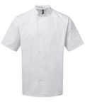 A durable short sleeve chef's jacket that fastens down the right hand side of the body with five long life resin buttons. On the left sleeve there is a handy double pocket pen compartment. This jacket is styled with a mandarin collar and is available in Black and White and offers great value for money.