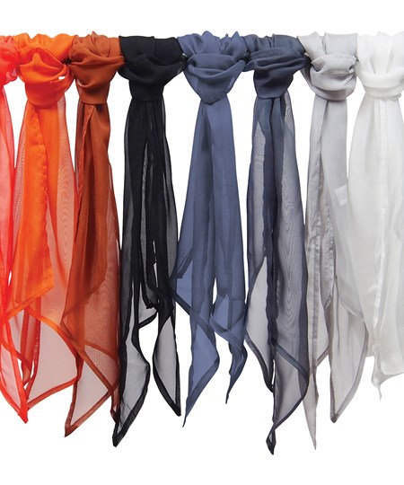 A great accessory for ladies to wear on the neckline, these light and lustrous chiffon scarves can be worn in a number of ways and are available in 38 colours from Premier's Colours Collection'. A charming and feminine piece to help elevate a plain work blouse.