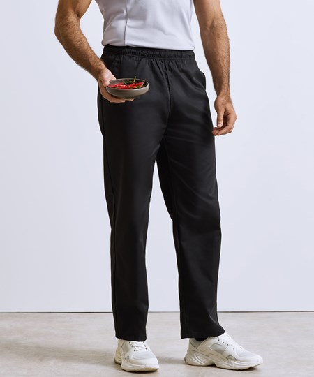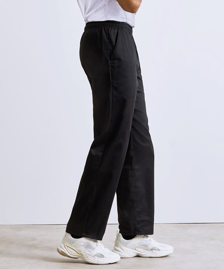 Essential pull-on chef's trouser in available in three popular patterned styles seen to today's modern kitchens. The elasticated waist also has a drawstring for a more gathered, fitted style round the waist and there are two useful swing pockets to the side.