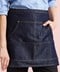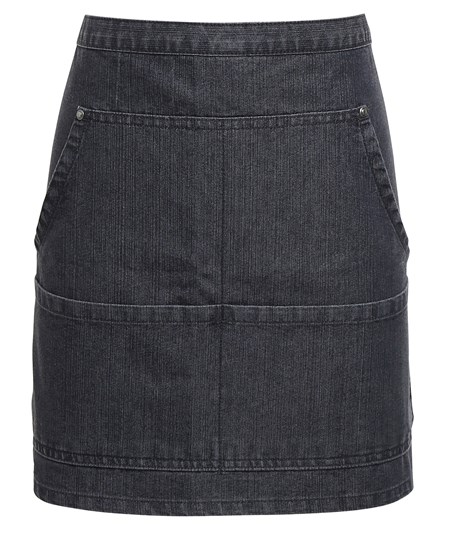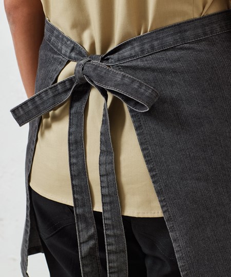 We have combined practicality with style and are proud to present this trendy denim waist apron that is a welcome addition to the hospitality wear collection. A popular cropped style featuring contrast stitch detail that forms four front pockets which are handy for carrying payment terminals and order pads. Self-fabric ties are long enough to be doubled and tied at the front completing a neat and professional uniform for service staff.