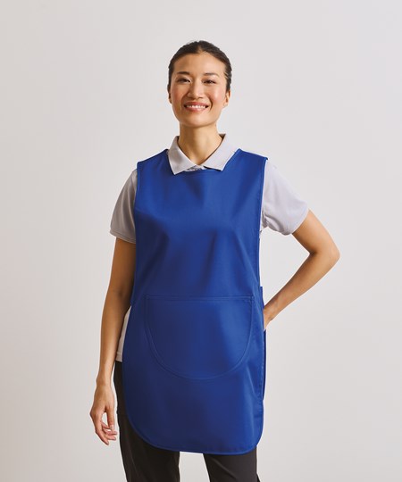 A longer length tabard with a centre front pocket, useful for carrying accessories. This traditional coverall goes over the head and fastens at the side with stud buttons. This tabard offer extra coverage for the wearer with a total length of 78cm.