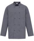 An easycare long sleeve chef's jacket with a ten-button wrap over style fastening. To withstand the demands of repeated washing, the buttons are long-life resin buttons. A smart jacket for chefs with a mandarin collar for a streamlined look. Available in black, white and steel across a wide range of sizes.