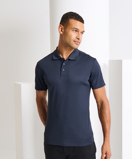 Men’s short sleeve polo shirt made from certified recycled polyester with production method that has a reduced environmental impact for creating spun dyed yarns. Moisture management properties to the fabric guarantee a breathable and wicking performance, so the wearer stays fresh and cool. Styled with a ribbed collar, three-button placket and side vents.