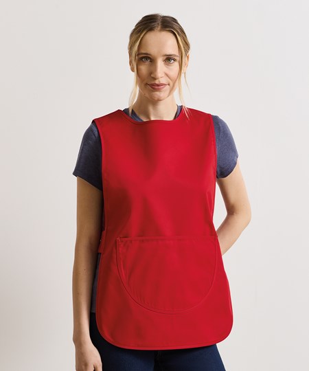 A traditional over-the-head tabard available in vibrant colours. This coverall fastens securely at the side with adjustable studs and offers great protection against spillages. In the centre is a large patch pocket with a bias trim edge, useful for carrying accessories.