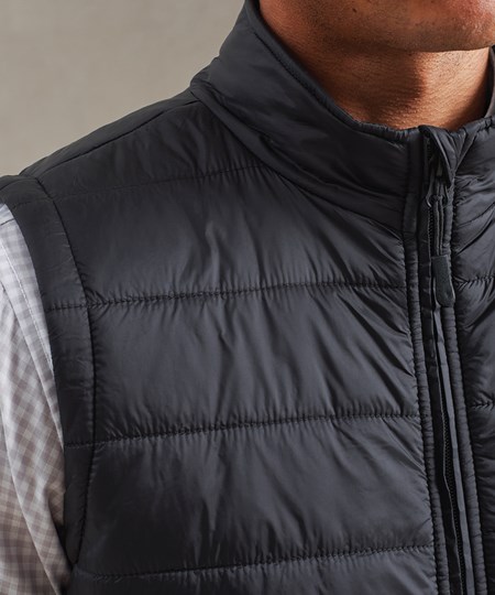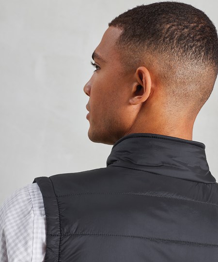 A lightweight and water-resistant padded gilet made from 100% certified recycled nylon and polyester for a great more sustainable outerwear solution. Horizontal stitching across the gilet creates baffles to ensure even distribution of the insulation within. This men’s ‘Recyclight’ gilet is filled with recycled synthetic down for warmth, whilst also being lightweight enough to fold away in its own stuff sack. Full zip-through style with two zipped side pockets and a handy open pocket to the inner lining. A zip in the inner lining provides full embroidery access, offering a great corporate or teamwear solution that can be branded accordingly. The fashionable and versatile nature of this bodywarmer also means it can be worn as an everyday leisurewear style.