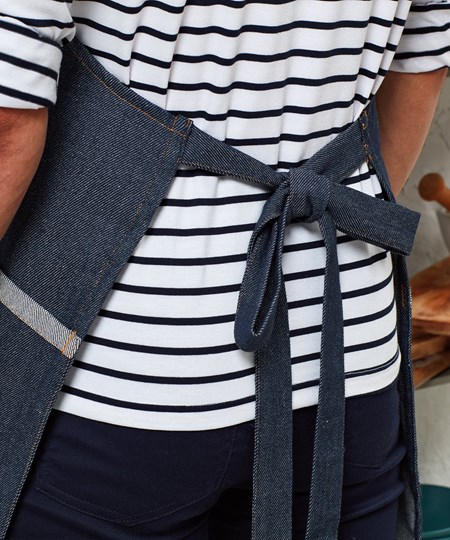 Made entirely from regenerated denim, and woven on hand looms in a low-powered carbon factory, this cotton apron has a great more sustainable story to tell! The fleck effect is testimony to the recycled denim fabrics that this apron was created from. It features two slanted side pockets with contrast trim and a knotted neckband that can be adjusted for height. Super-soft to touch, with a linen feel.