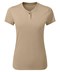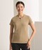 A popular style for service staff, this women’s short sleeve t-shirt is made from a combination of certified recycled polyester and cotton. Designed with a single button on the placket and a narrow banded collar, this style has a soft feel to the fabric.