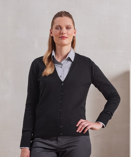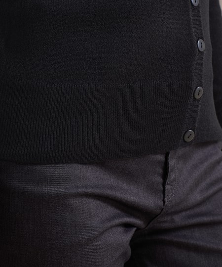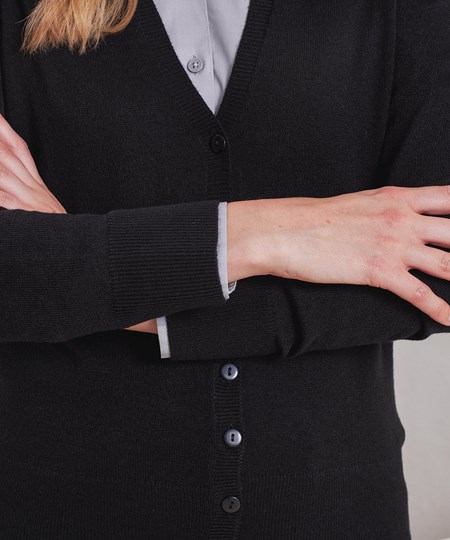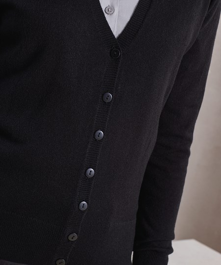A simple easy wearing cardigan for ladies that adds layers of style to your outfit. Designed with ribbed knit set-in sleeves, hem line and v-neck for a contemporary modern look.