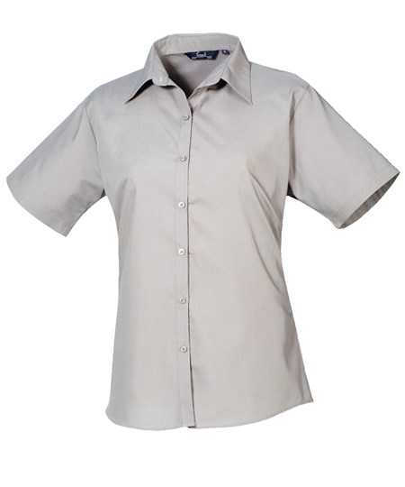 A ladies short sleeved Poplin blouse with semi fitted styling, available in 30 colours. The blouse features soft collar styling with bust and back darts and a rounded bottom hem for an attractive piece of workwear for women.