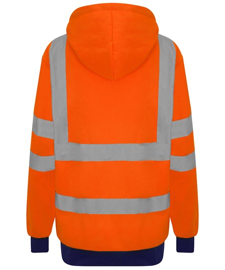 A modern workwear essential, our high visibility hoodie is practical, comfortable and warm. With a double fabric hood and adjustable drawcords, this is a key piece to see you though any season. The contrast colour hem and cuff creates a stylish yet practical finish.