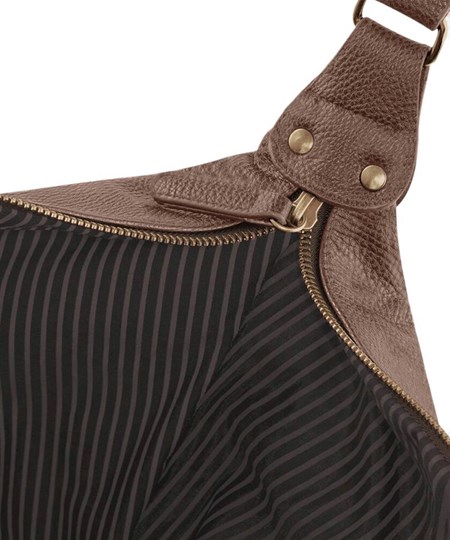 - Fully lined in pinstriped fabric