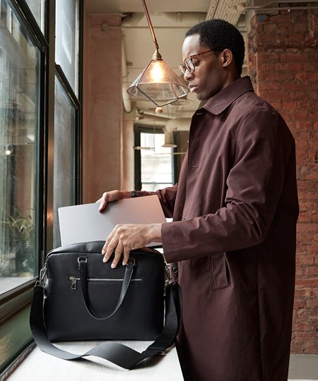 Featuring perfectly-sized compartments for paperwork, laptops and other professional essentials, this briefcase offers a contemporary approach to traditional dressing. It also features a comfortable luggage shoulder strap, giving full support without compromising on style.