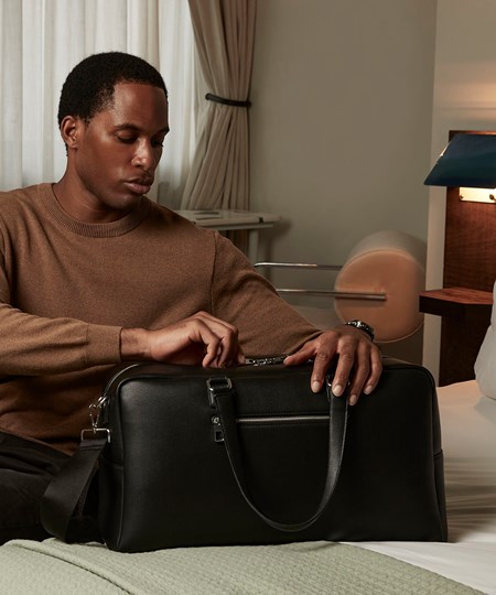 All styles in the Tailored Luxe collection are made from a premium leather-like fabric with a pebbled grain for an elevated finish. Each design has a structured silhouette, which, when combined with a minimalist aesthetic, delivers a contemporary alternative to traditional tailored styling. Angular edges and boxy shapes are the epitome of modern luxury in this weekender – a sophisticated way to travel with all of your essentials, its light, luxurious lining adding the perfect finishing touch.